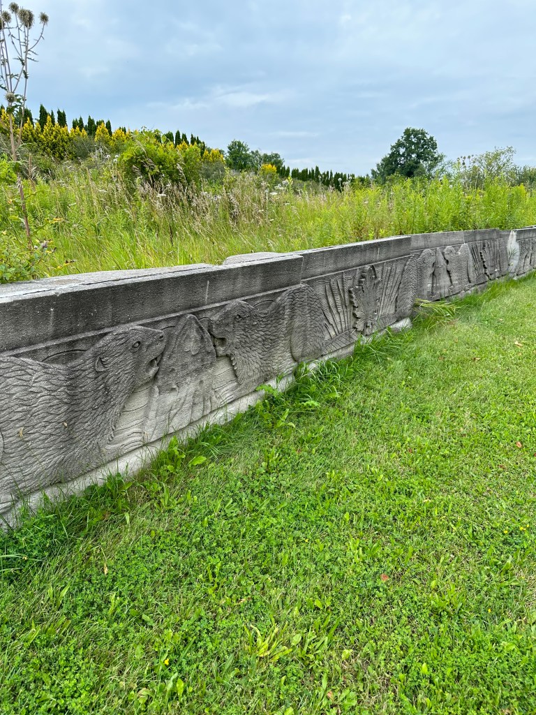 ITEM #1051 Carved Limestone Panels from Toronto’s Historic Post Office. 8 pieces. 36” tall 72” long 11” thick weight 3000lbs