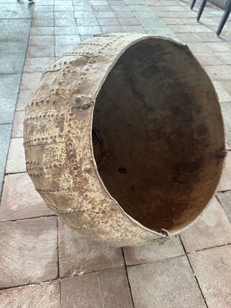 ITEM #1048 Rajasthani container. Nice detail. 20” tall 24” dia.